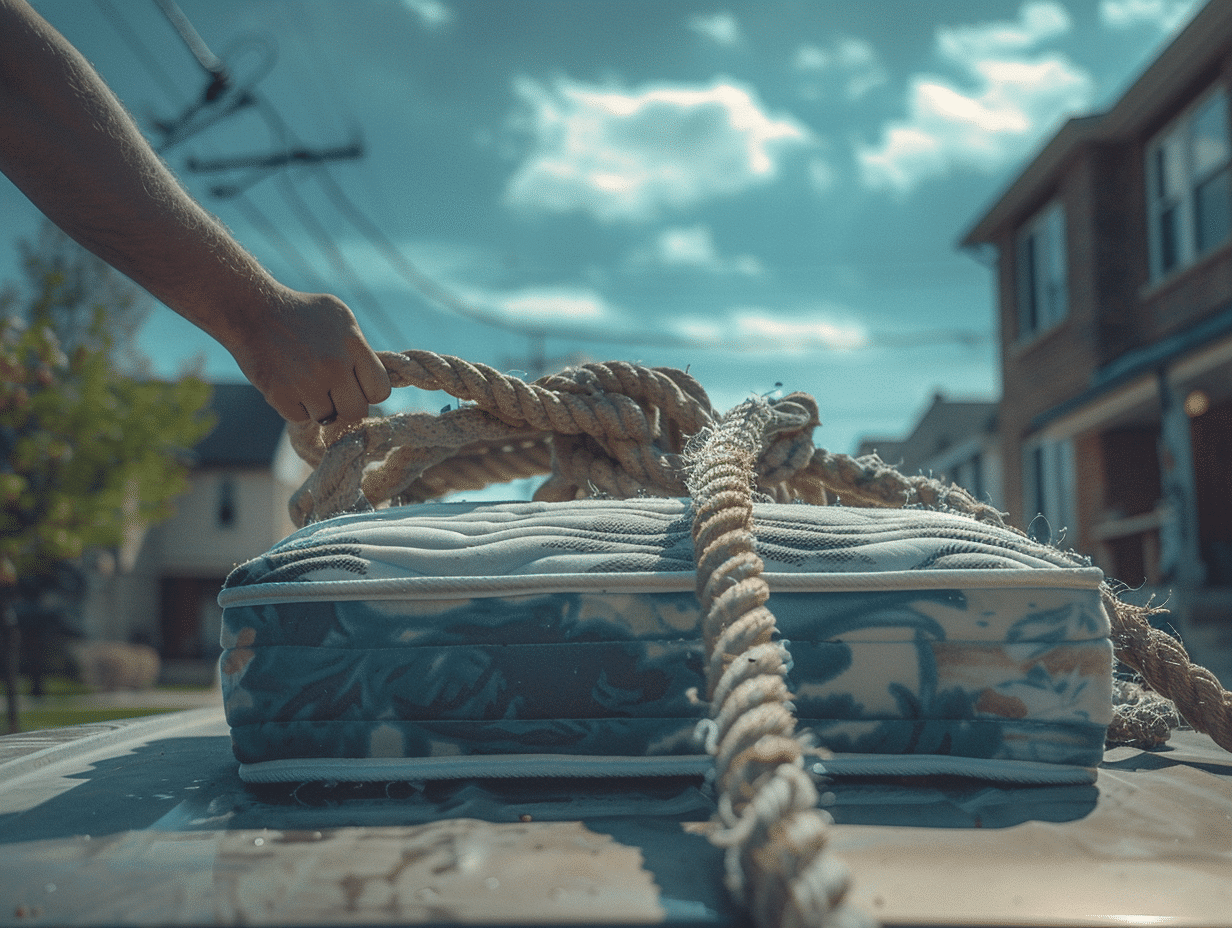 La fixation du matelas est aussi un point fondamental pour éviter les mouvements intempestifs pendant le transport. Utilisez des sangles d’arrimage pour maintenir le matelas en place. Voici comment procéder :